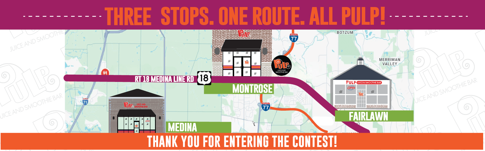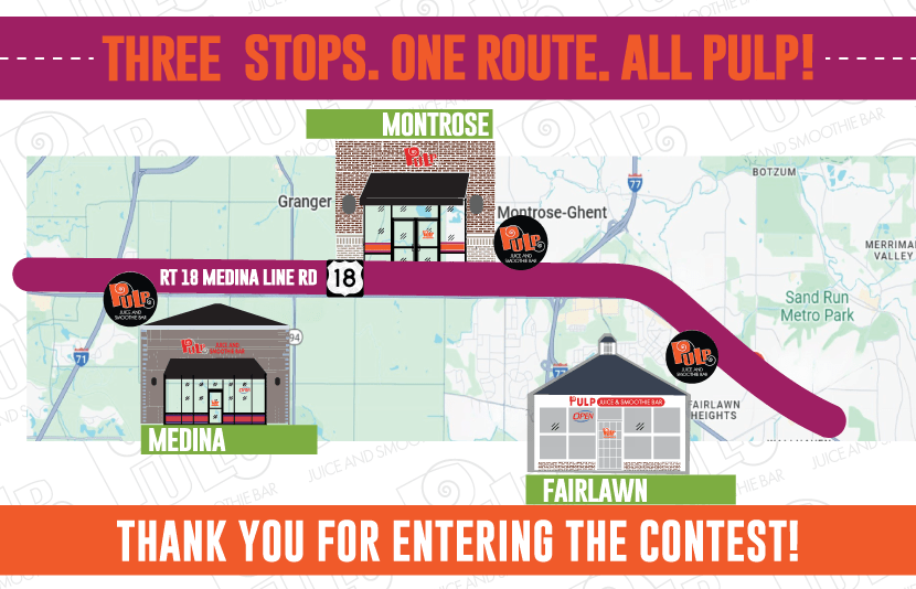 Winners will be notified by email or phone – so keep an eye on your inbox! We’ll be announcing the winners 1st on our official Facebook Page, so be sure to LIKE & follow us, as well as your favorite Pulp Juice and Smoothie Bar Location! Visit our Locations page to find your Pulp and follow them on Facebook!