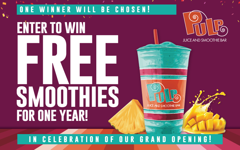 Pulp Juice and Smoothie Bar is opening in Grove City Ohio, and we’re celebrating in the best way possible! We’re giving one lucky customer the chance to enjoy FREE smoothies for an entire year! 🍓🥭🍌